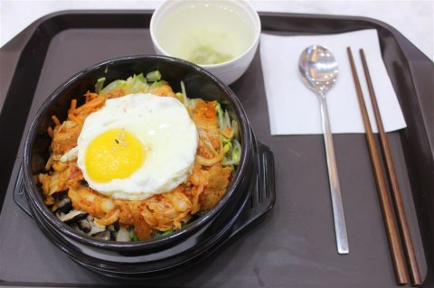 黑盘子上的石锅拌饭