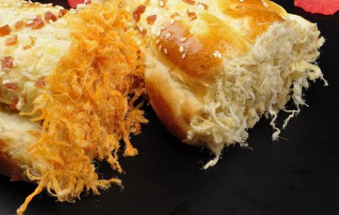 懒人早餐中式汉堡馒头片搭配肉片肉松