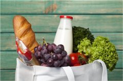 购物袋里的葡萄牛奶等摄影