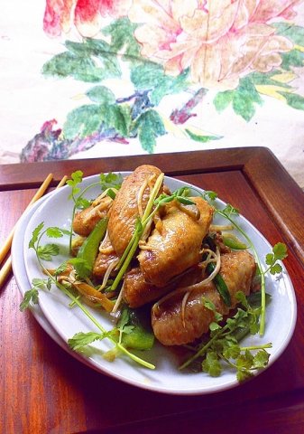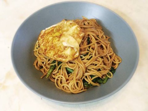 简单午餐豆芽炒韭菜煎鲑鱼豆腐皮肉卷