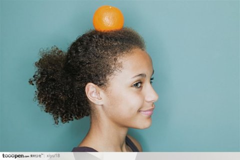饮食习惯-头上顶着橙子的女孩